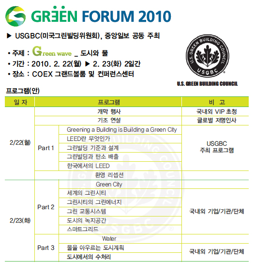 | USGBC(¹Ì±¹±×¸°ºôµùÀ§¿øÈ¸), Áß¾ÓÀϺ¸ | 2010-02-19 | ||||||||||||||||||